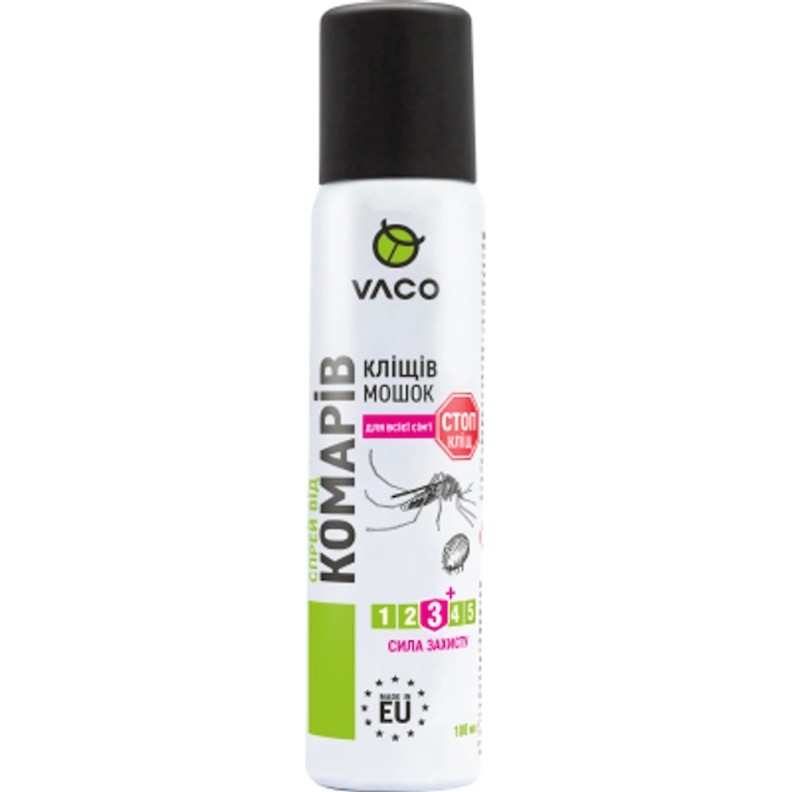 Spray-ul VACO împotriva țânțarilor, căpușelor și muștelor – un produs eficient de protecție pentru întreaga familie. Oferă efect repelent până la 5 ore după aplicare.