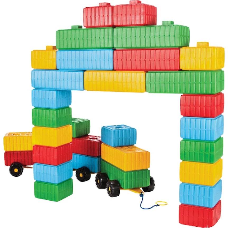 Setul de cărămizi mari de construcție cu roți de la Pilsan îi ajută pe copii să-și dezvolte imaginația și capacitățile motorii. Aceste cărămizi mari sunt realizate din material plastic rezistent și sunt disponibile în 4 culori: galben, roșu, verde și albastru, deasemenea setul conține piese cu roți. Fantele de pe cărămizi au fost special proiectate astfel încât să poată fi ușor conectate între ele pentru a crea combinații infinite. Cărămizile mega pot fi folosite și ca blocuri de construcție gigant. Ele sunt perfecte pentru a încuraja dexteritatea si creativitatea, iar datorită dimensiunii lor mari sunt potrivite pentru copiii mai mici.