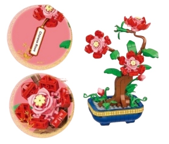 Creeaza o decoratiune eleganta si plina de farmec cu acest set de constructie Trandafir chinezesc in vazon, format din 325 de piese fine si colorate!