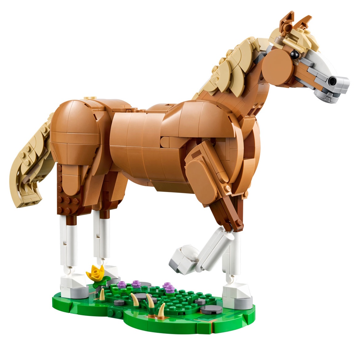 Fetele și băieții iubitori de animale, cu vârsta de 9 ani și peste, se vor bucura de povești captivante cu acest set de construcție LEGO® Creator Calul Frumos (31166). Această figurină cal are cap, gât, șolduri, glezne, coadă și un genunchi mobili. Baza asemănătoare ierbii le permite copiilor să o poziționeze în trei poziții diferite: pe trei sau patru picioare sau pe cele două picioare din spate.
