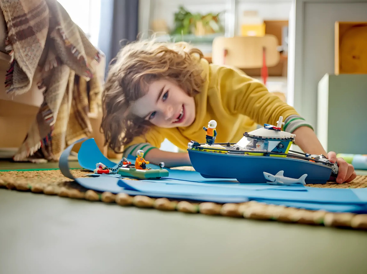 Setul de joacă LEGO® City Urmărirea cu barca poliției (60456) va încânta cu siguranță eroii de zi cu zi în devenire. Ideal pentru constructorii cu vârsta de 6 ani și peste, acest set include o barcă de poliție de jucărie cu 2 motoare exterioare și spațiu de depozitare la bord, plus o barcă cu motor pentru infractori. Copiii pot lua ambele bărci pe apă și se pot cufunda în aventuri palpitante de urmărire a poliției cu 2 polițiști, un escroc, un rechin agil și un rubin furat!