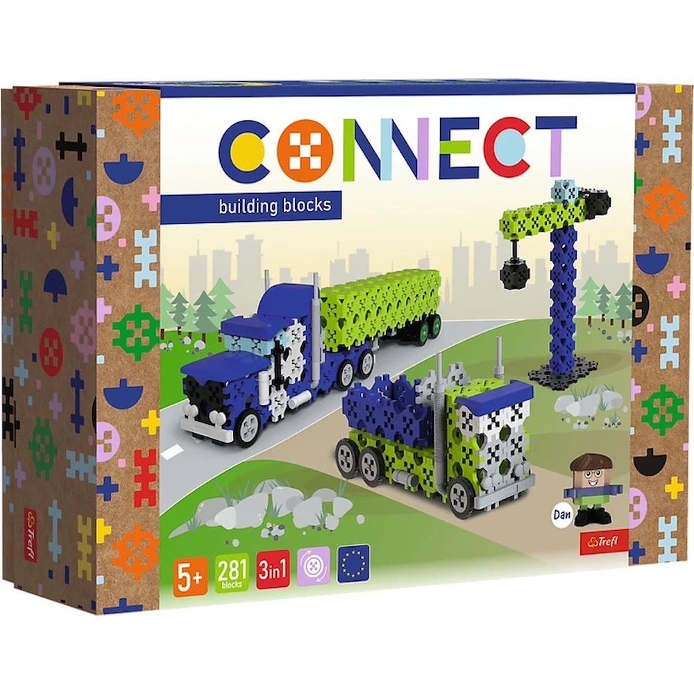 Descoperă joaca creativă cu setul de construcție Connect 3 în 1: camion / șantier, care permite construirea a trei modele diferite: camion mare (lungime 48 cm), camion mic (lungime 22 cm) și macara (înălțime 30 cm). Setul conține 281 de piese, inclusiv o figurină și elemente decorative suplimentare, care fac fiecare construcție unică. Datorită pieselor mobile, te poți bucura nu doar de construcție, ci și de o joacă dinamică, iar piesele special concepute asigură stabilitatea structurii.