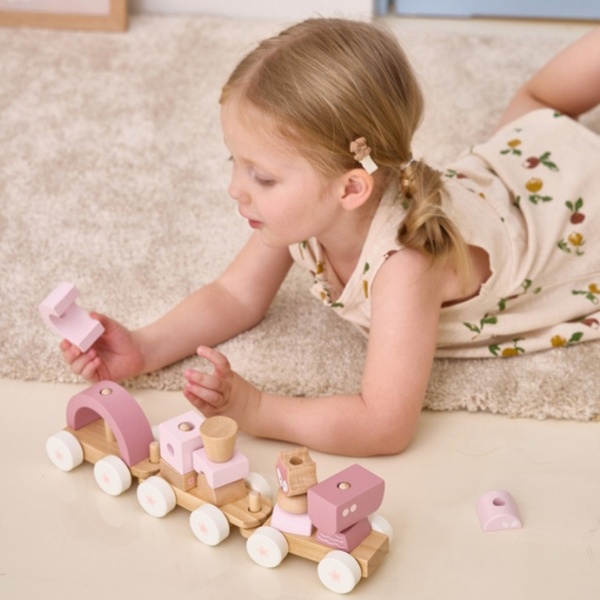 Очаровательный розовый паровозик PolarB от Viga — это не только увлекательная игрушка, но и средство для развития малыша. В комплект входят 3 вагончика и 14 деревянных блоков разных форм, которые можно свободно комбинировать, создавая уникальные конструкции. Приглушённые пастельные тона и удобные для захвата детали делают паровозик идеальным выбором для детей с 18 месяцев.