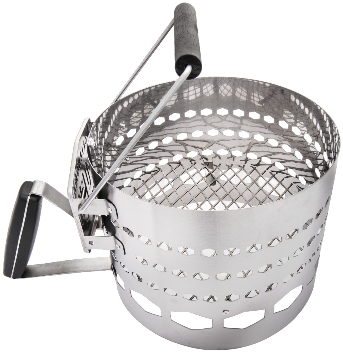 Fabricat din oțel inoxidabil rezistent, starterul oferă durabilitate, iar mânerul rezistent la căldură rămâne rece la atingere, protejând mâinile. Capacitatea este de până la 100 brichete, ideal pentru cantități mari de cărbune.