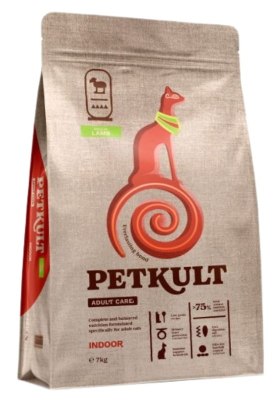 Hrană uscată pentru pisici Petkult Adult Care Indoor Lamb 7kg