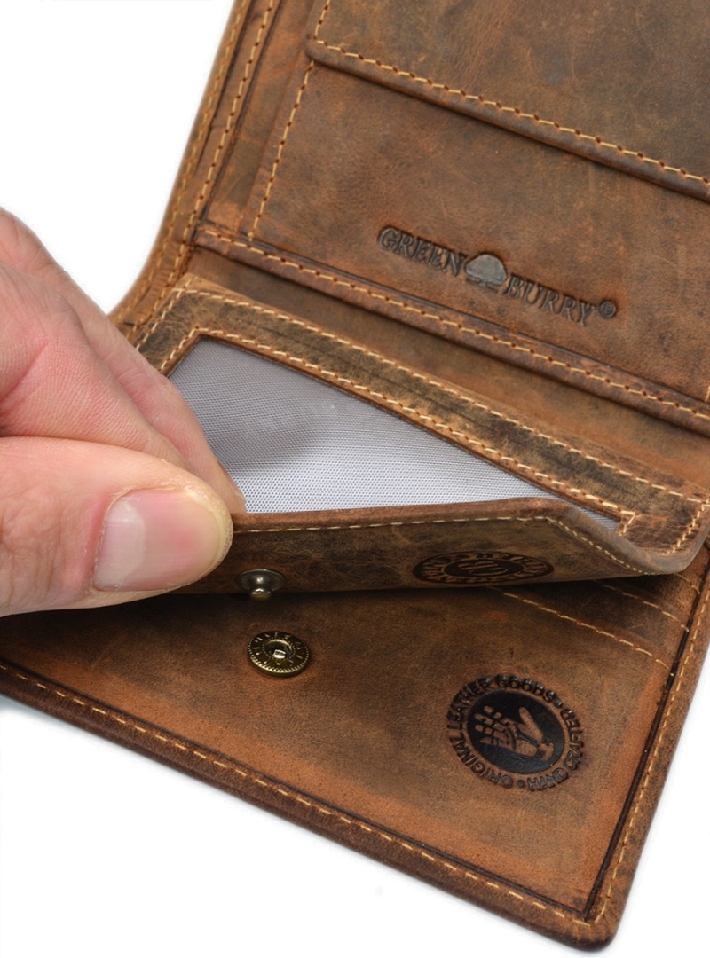 Acest portofel Greenburry Vintage din piele combină armonios farmecul rustic cu funcționalitatea modernă. Realizat din piele maro de înaltă calitate, are un aspect elegant și rafinat, subliniind stilul personal. Interiorul este bine compartimentat, oferind spațiu pentru bancnote, monede, carduri și documente. Suportul detașabil pentru acte de identitate adaugă versatilitate, făcând portofelul practic pentru utilizarea zilnică. Formatul său compact economisește spațiu, iar nuanța naturală a pielii îi conferă un caracter autentic și călduros.