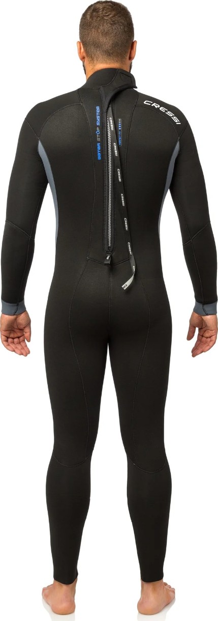 Costumul de neopren Cressi Fast Man Monopiece 7mm 3XL este un costum bărbătesc dintr-o singură piesă, realizat din neopren dublu stratificat de 7 mm, oferind o izolație termică excelentă și rezistență la comprimare la adâncime. Dispune de un sistem etanș cu garnituri interne la încheieturi și glezne, care reduce pătrunderea apei și îmbunătățește protecția termică. Fermoarul vertical YKK pe spate, cu panou impermeabil, creează o barieră suplimentară în zona coloanei vertebrale. Neoprenul foarte moale de pe brațe și gambe sporește flexibilitatea și confortul, croiala preformată a pantalonilor susține poziția naturală a corpului, iar genunchii întăriți protejează zonele expuse la uzură fără a limita libertatea de mișcare.