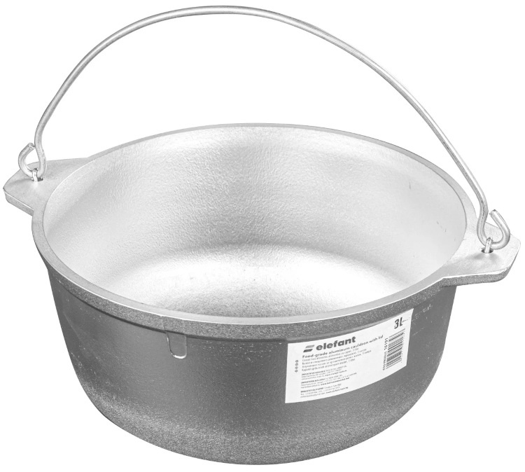 Ceaunul ELEFANT din aluminiu alimentar, cu o capacitate de 3L, este un vas versatil și eficient, ideal pentru prepararea rețetelor tradiționale, atât în bucătărie, cât și în aer liber. Construit din aluminiu alimentar durabil, asigură o distribuție uniformă a căldurii, prevenind arderea și garantând o gătire uniformă. Materialul ușor și rezistent permite o manevrare facilă, iar capacul inclus ajută la menținerea temperaturii și a aromei preparatelor. Cu o capacitate optimă de 3 litri, este potrivit pentru porții de familie sau pentru gătit în camping. Fundul și pereții au o grosime de 3 mm, oferind stabilitate și durabilitate. Ușor de curățat și întreținut, acest ceaun combină practicabilitatea zilnică cu performanța de încredere în orice situație culinară.