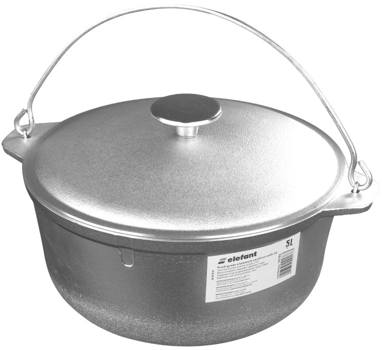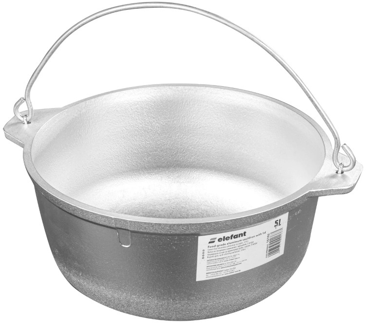 Ceaunul Elefant, model 20073, este un vas rezistent și practic, cu o capacitate de 5 litri, fabricat din aluminiu alimentar de înaltă calitate. Ideal pentru prepararea unei game variate de mâncăruri, atât acasă, cât și în aer liber, acest ceaun asigură o distribuție uniformă a căldurii, prevenind arderea alimentelor și păstrând aroma naturală a ingredientelor. Cu o grosime a fundului și a pereților de 3 mm, oferă durabilitate și o conductivitate termică excelentă. Având o greutate de doar 1,4 kg, este ușor de transportat și manevrat, fiind alegerea perfectă pentru mese în familie, picnicuri sau gătit în natură.