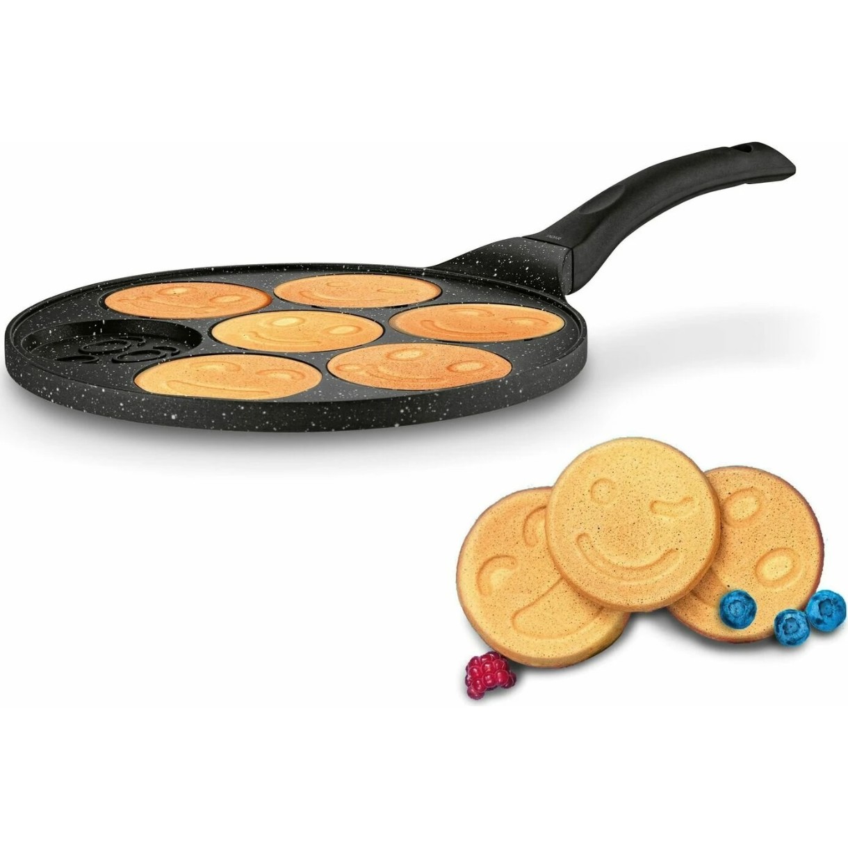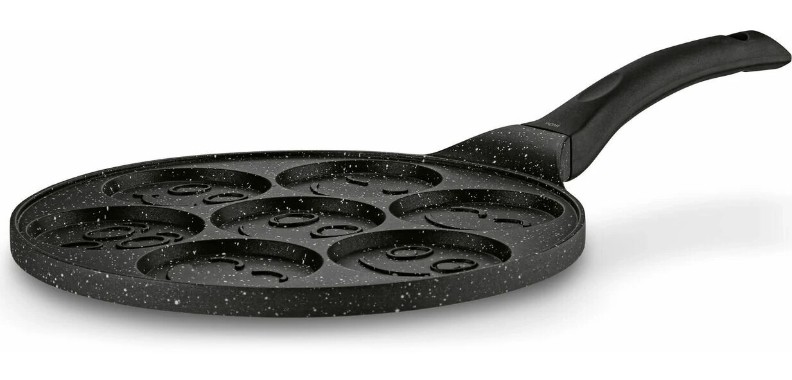 Cea mai bună rețetă de clătite provine din această tigaie. Clătitele mini vor fi întotdeauna perfect rumenite și ușor de digerat. Le puteți prepara cu puțină grăsime, fără să se lipească. Veți economisi timp și energie. Clătitele dvs. vor fi perfect rotunde și uniforme. Adânciturile atractive vă vor permite să creați micul dejun perfect. Puteți găti până la 7 clătite simultan pe o plită cu inducție, electrică, cu gaz sau ceramică.