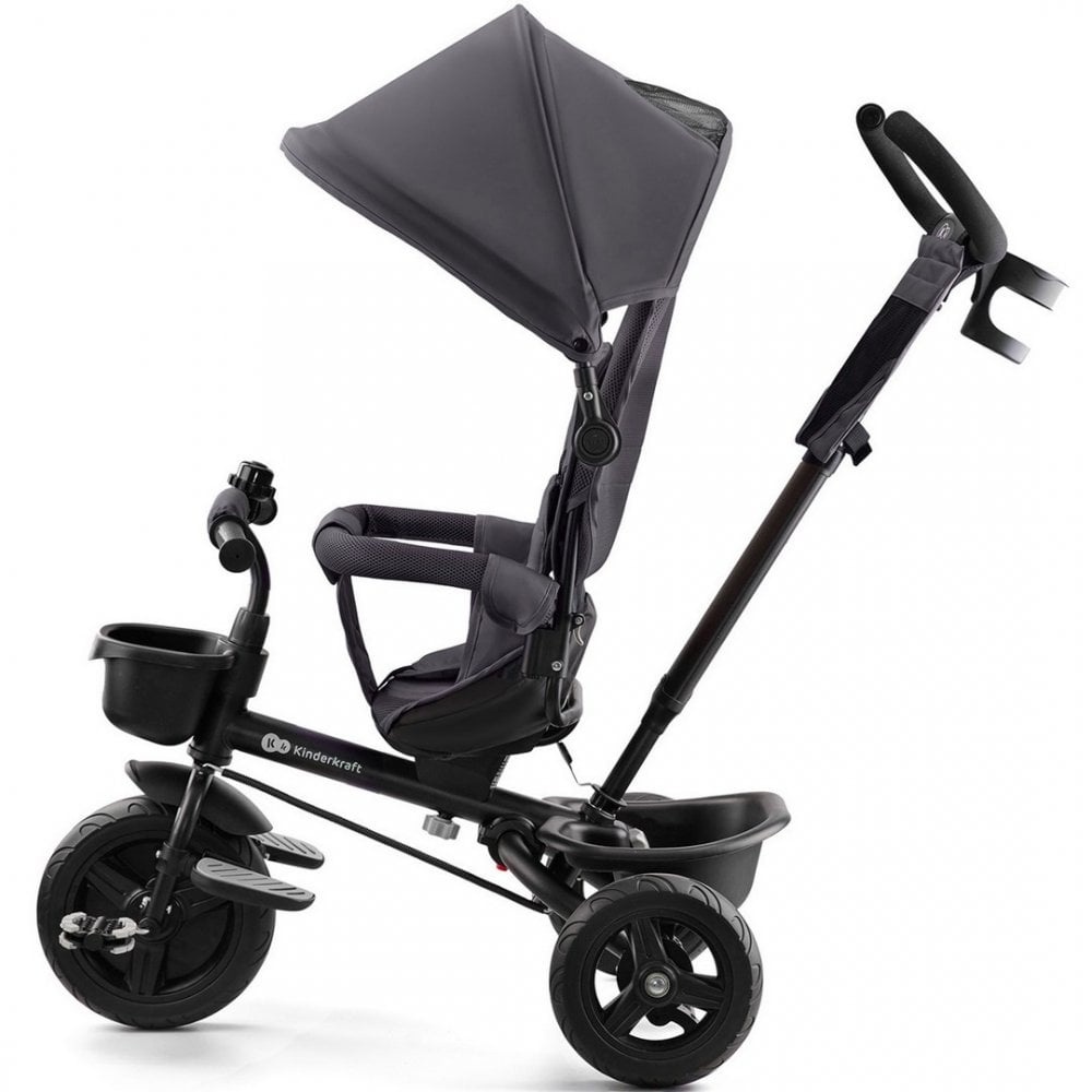 Tricicleta AVEO de la Kinderkraft este un produs potrivit pentru copiii între 9 luni și aproximativ 5 ani. Este dotată cu roți rezistente, care nu trebuie umflate. Un atu suplimentar al tricicletei AVEO este scaunul pivotant, dar face posibilă reglarea cu spatele sau fața către direcția de mers. Este un produs care crește împreună cu copilul – construcția modulară pliabilă permite transformarea ușoară și potrivirea în funcție de vârsta copilului.