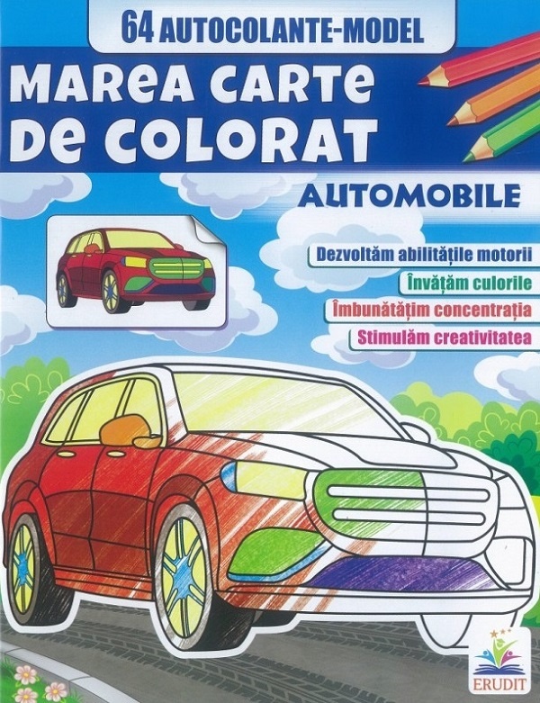 Marea carte de colorat cu abțibilduri Automobile este un material educativ captivant, care îmbină bucuria creativității cu beneficiile pentru dezvoltarea copilului. Pe fiecare pagină, cei mici vor găsi diverse modele de mașini gata de colorat, iar abțibildurile strălucitoare incluse fac procesul și mai interesant și interactiv. Activitățile din această carte ajută la dezvoltarea motricității fine, la învățarea culorilor și la antrenarea concentrării, transformând timpul liber într-o aventură veselă care stimulează imaginația și pasiunea pentru tehnică.