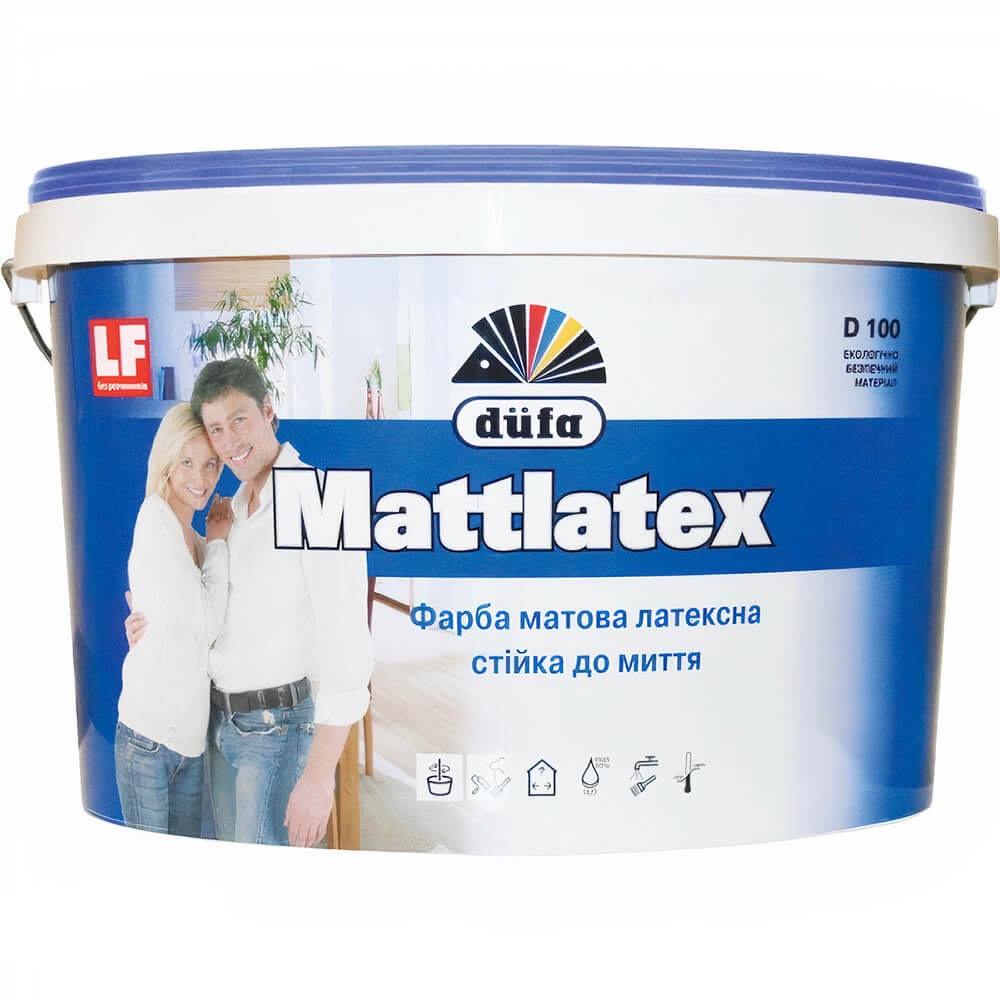 Vopsea Dufa Mattlatex D100 1 kg este o vopsea lavabilă mată pe bază de dispersie apoasă latexată pentru interior, destinată vopsirii pereților și tavanelor în încăperi, formând un strat durabil, rezistent la uzură și spălare, cu finisaj mat și bună permeabilitate la vapori, potrivită pentru beton, tencuială, cărămidă, gips‑carton și alte suprafețe minerale sau pe bază de lemn, aplicabilă cu pensula, trafaletul sau pulverizatorul.