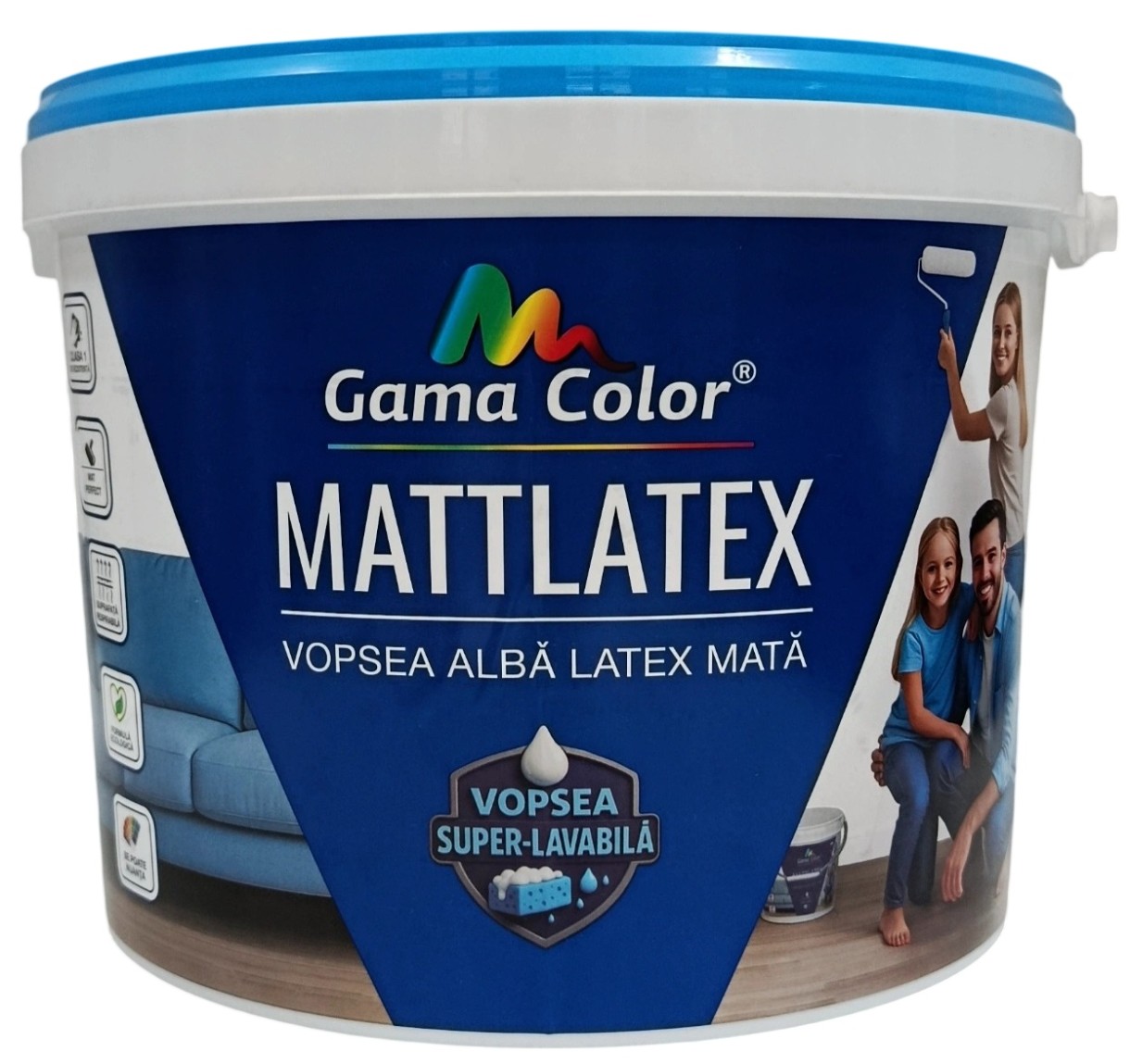 Vopseaua lavabilă Mattlatex Gama Color este o vopsea latex mată, de culoare albă, pentru pereți și tavane. Creează un finisaj uniform și neted, care ascunde eficient imperfecțiunile minore ale suprafeței și conferă încăperii un aspect proaspăt și îngrijit. Această vopsea este potrivită pentru toate spațiile rezidențiale și comerciale - dormitoare, bucătării, băi, birouri etc. Este potrivită pentru vopsirea substraturilor de ciment-var, gips-carton, calcar și alte suprafețe minerale.