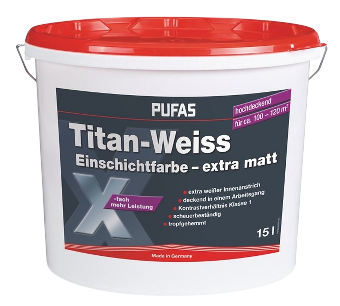 Vopseaua Pufas Titan-Weiss 70504, 15 l este o vopsea albă de interior de înaltă calitate, destinată vopsirii pereților și plafoanelor din spații rezidențiale, de birou și comerciale. Are o putere mare de acoperire, asigurând un strat alb uniform, fără urme sau dungi. Se aplică ușor cu pensula, trafaletul sau pulverizatorul, se usucă rapid și aproape nu are miros, oferind confort în timpul aplicării. Este potrivită pentru suprafețe din beton, tencuială, gips-carton și suprafețe vopsite anterior, contribuind la un interior luminos și bine finisat.