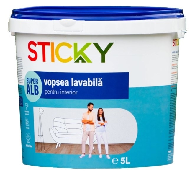 Vopseaua Sticky 2310031, 5 l este ideală pentru pereți interiori. Este realizată pe bază de copolimeri acrilici, dioxid de titan și aditivi speciali, fiind potrivită pentru aplicarea pe tencuială, beton și alte suprafețe minerale. Se aplică ușor, reducând timpul de așteptare între straturi și permițând finalizarea rapidă a lucrărilor de vopsire, oferind un finisaj uniform și curat.