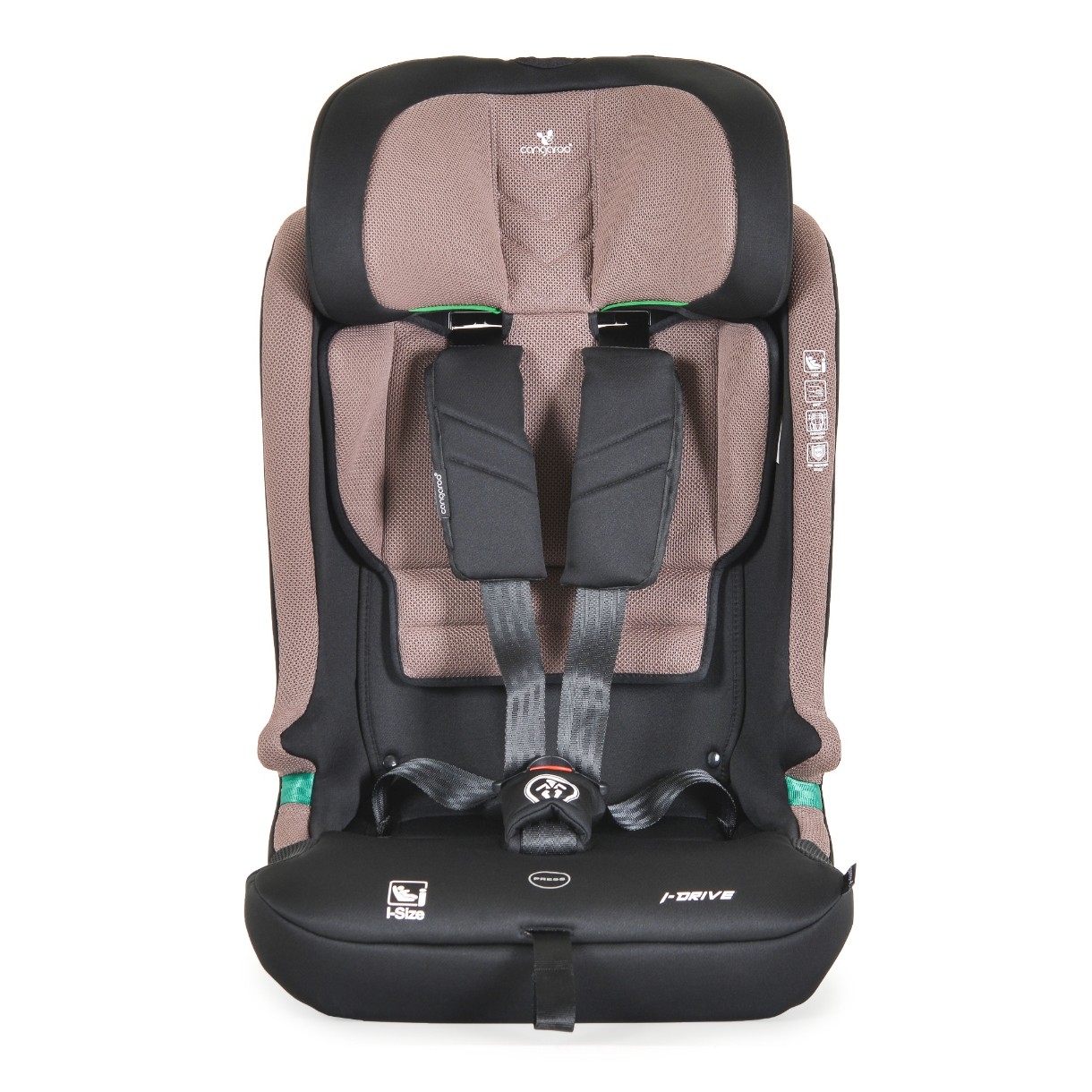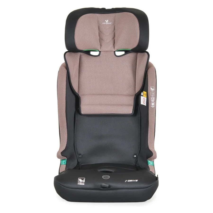 Scaunul auto I-Drive cu sistem Isofix și Top Tether este conceput pentru copii cu înălțimea cuprinsă între 76 și 150 cm. Componentele sale principale sunt turnate prin injecție, oferind o rezistență și o siguranță mai mari decât alte produse. Dispune de un ham cu 5 puncte de fixare, moale, cu pernuțe antiderapante.