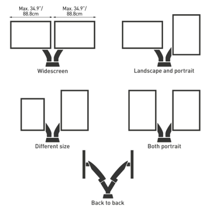 Standard VESA75x75, 100x100 mm