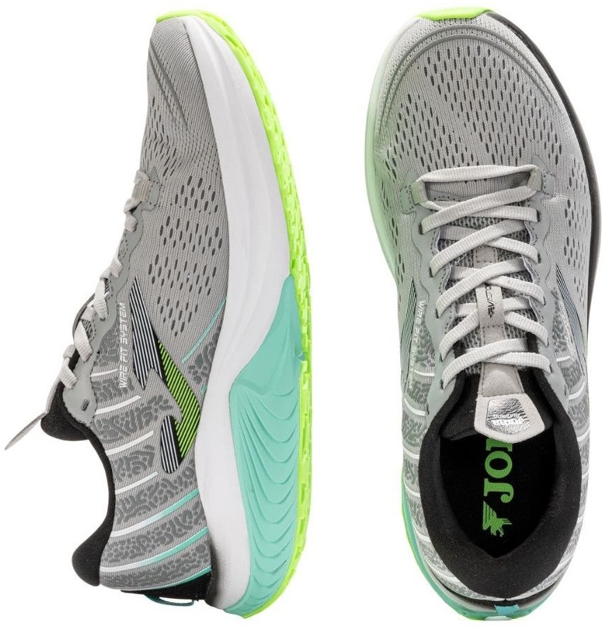 Partea superioară este realizată din mesh cu finisaj jacquard elegant, cu un imprimeu personalizat. Sistemul de ventilație VTS elimină transpirația și menține o temperatură constantă a picioarelor. Sistemul de fixare JOMA SPORTECH, aplicat prin termosudare în zona șireturilor, oferă susținere suplimentară.