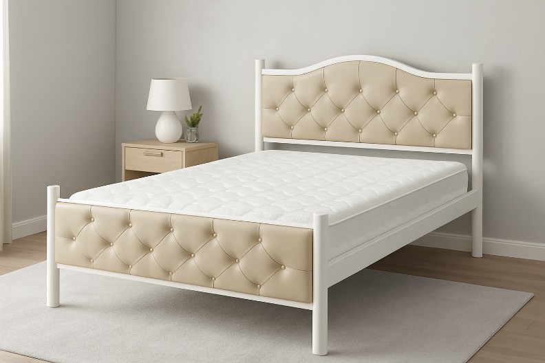 Patul Evger K-500 reprezintă o alegere elegantă și practică pentru dormitor. Corpul este realizat din metal, oferind rezistență și stabilitate, iar partea frontală este finisată cu material textil, adăugând textură și un aspect mai cald. În pachet este inclus și cadrul metalic (baza), astfel încât patul poate fi utilizat imediat, fără componente adiționale. Modelul se livrează fără saltea, oferindu-ți libertatea de a alege varianta optimă de confort.