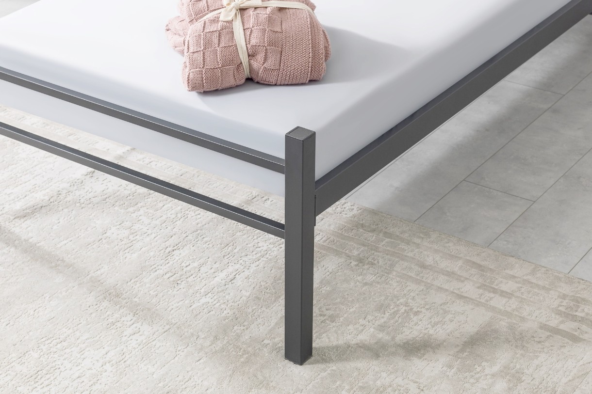 Patul Evger K-90 este o opțiune elegantă și funcțională cu structură metalică vopsită în negru. În pachet este inclus cadrul metalic (baza), astfel încât patul poate fi folosit fără a fi nevoie de achiziții adiționale. Designul său simplu și versatil permite integrarea ușoară în diverse stiluri de amenajare. Modelul se livrează fără saltea, oferindu-ți libertatea de a alege varianta de confort potrivită.