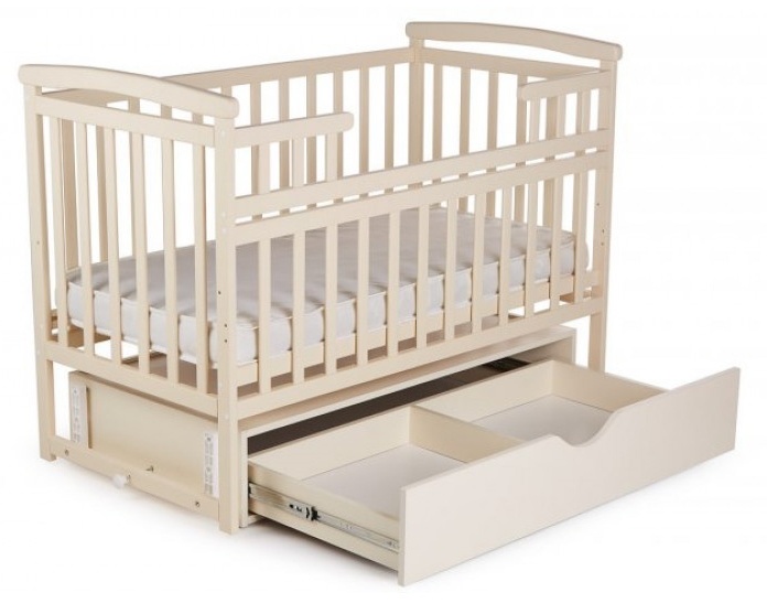 Patul este realizat din pin masiv, este ecologic, durabil și sigur pentru bebeluș. Este finisat cu lac netoxic și vopsea pe bază de apă recomandată pentru mobilierul pentru copii. Patul are două poziții de reglare pe înălțime. Formele pieselor sunt rotunjite și sigure, echipat cu pendul transversal cu posibilitate de fixare. Patul este completat cu sertar închis, cu două spații, pentru depozitarea lucrurilor (cutia este din PAL certificat de înaltă calitate).