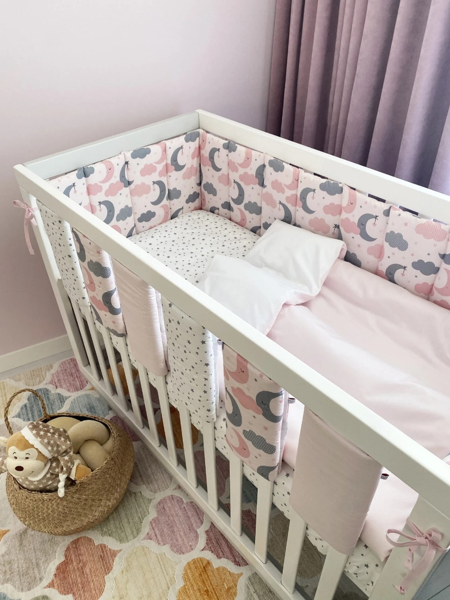 Protectie laterala pentru patut Veres Sleepy Moon Pink (154.05.01)