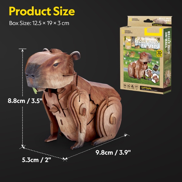 Descoperă gingășia celui mai mare rozător din lume cu puzzle-ul 3D „Capibara” de la National Geographic, perfect pentru micii exploratori și iubitorii de animale.