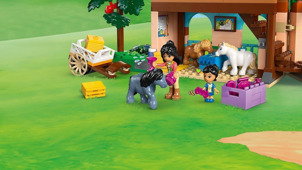 Copiii pot crea aventuri nesfârșite cu personajele Alia, Leanne, Victoria și Ella. Cei 3 ponei sunt distractiv de îngrijit și hrănit, și există o presă de balotat fân funcțională pentru a arunca baloții de fân la fânar sau la cărucior. În interiorul fermei, există un living confortabil, plus un fânar deasupra hambarului unde prietenilor le place să doarmă - visul oricărui iubitor de cai devenit realitate!
