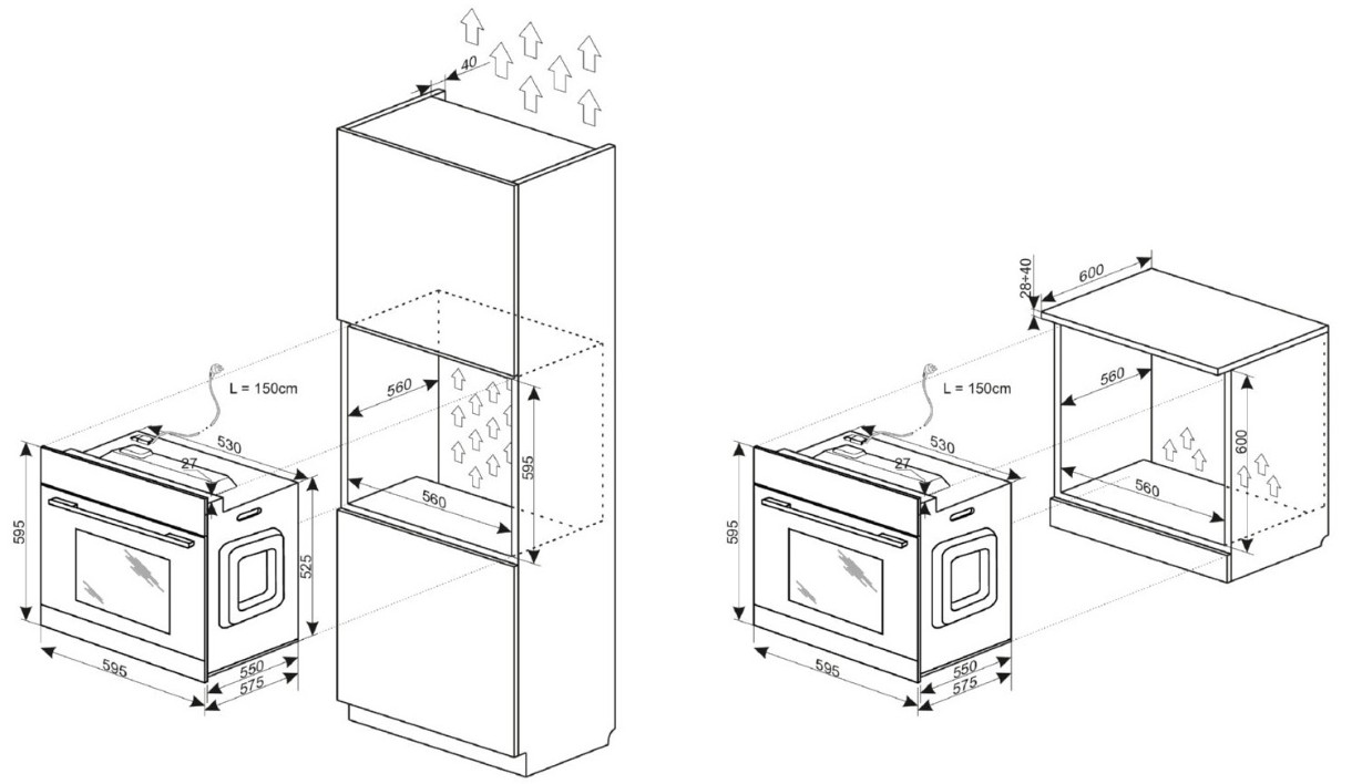 Măsuri de incorporare59.5x56x56 cm