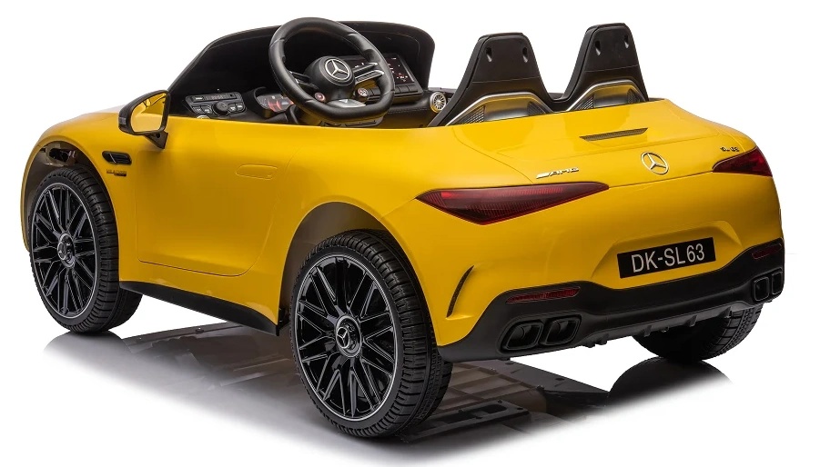 Modelul Mercedes-Benz SL63 24V se remarcă prin aspectul său sportiv și liniile fluide, inspirate din designul mașinii reale. Finisajul verde vopsit accentuează caracterul elegant al modelului, iar detaliile atent realizate oferă un aspect modern și bine proporționat.