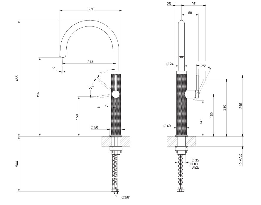 Baterie bucătărie Gessi 316 Kitchen Cesello 60020-726