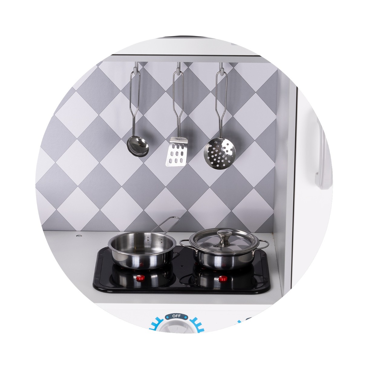 Inspiră-ți micul bucătar de acasă cu setul de bucătărie din lemn pentru copii Chipolino - kitul perfect pentru toți tinerii aventurieri culinari! Cu designul său realist, efectele sonore și luminoase și numeroasele funcții interactive, această bucătărie garantează momente de neuitat și ore întregi de joacă captivantă. Potrivită atât pentru fete, cât și pentru băieți, combină joaca și învățarea într-un mod natural și captivant. Fabricată în conformitate cu directivele europene și standardele de siguranță, este complet potrivită pentru copiii mici, asigurând liniștea sufletească și siguranța părinților în timpul jocului.
