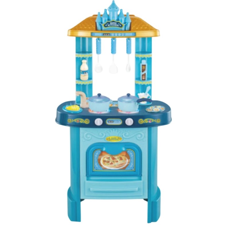Setul de bucătărie „Castel” este o jucărie colorată și captivantă pentru micii bucătari, realizată într-un design original de castel. Combinația dintre aspectul magic și funcționalitatea realistă oferă copiilor posibilitatea de a găti, de a se juca cu accesoriile și de a crea propriile povești culinare. Culoarea albastră adaugă un farmec elegant și de basm.