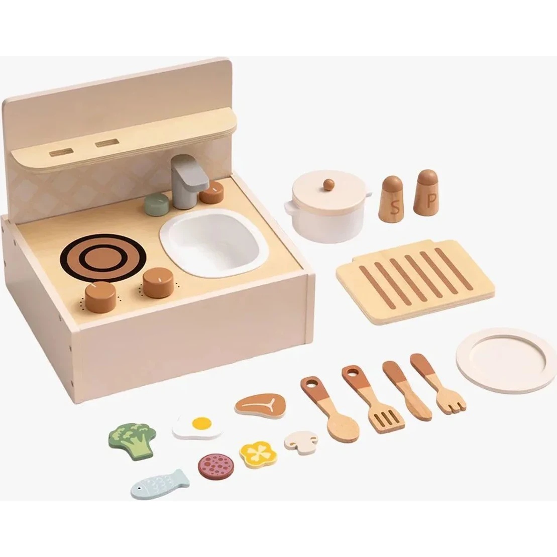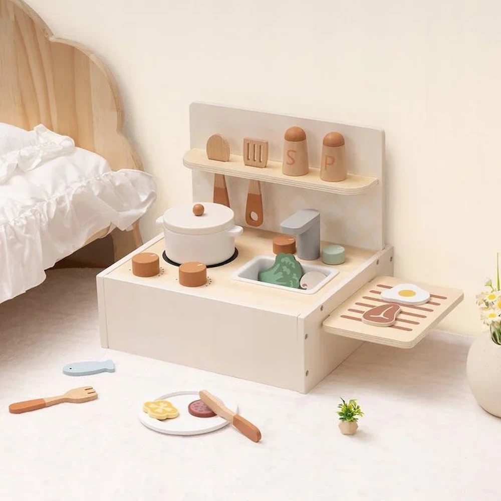 Transformă jocul de rol într-o experiență creativă și educativă cu Bucătăria din lemn Tooky Toy pentru gătit , ideală pentru micii bucătari. Setul stimulează imaginația, coordonarea mână–ochi și motricitatea fină , oferind ore întregi de joacă interactivă și dezvoltare a creativității. Detaliile realiste și butoanele funcționale fac jocul mai captivant, inspirând copiii să exploreze lumea gătitului.