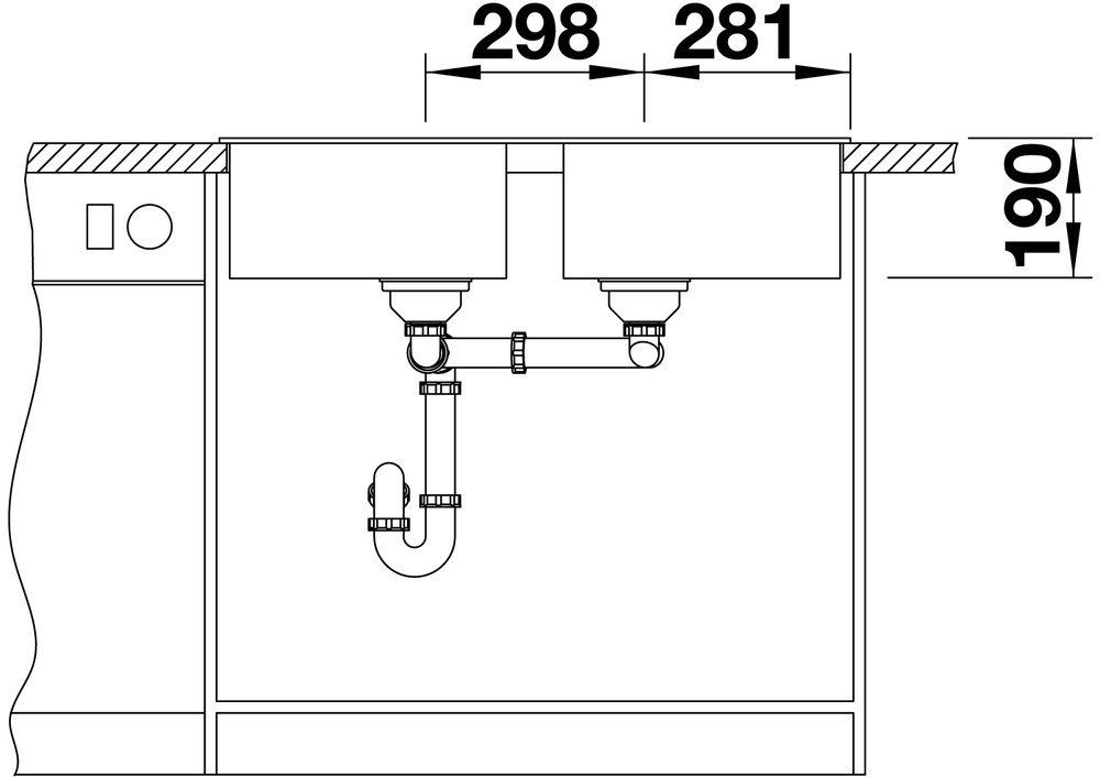 Adâncime cuvă auxiliară190 mm