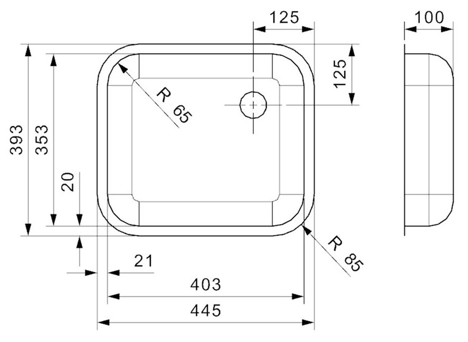 Dimensiuni cuvă403x353x100 mm