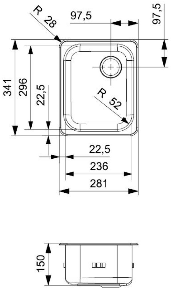 Adâncime cuvă150 mm