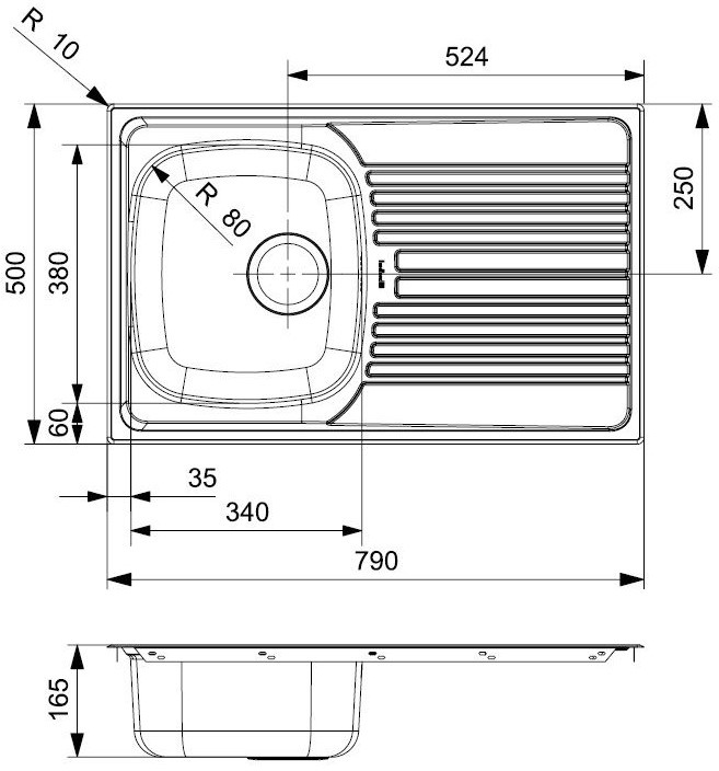 Adâncime cuvă165 mm