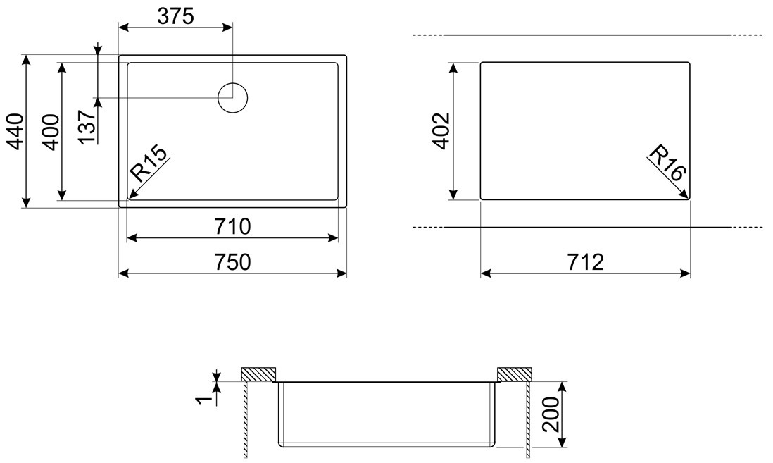 Chiuvetă de bucătărie Smeg VSTR71CUX