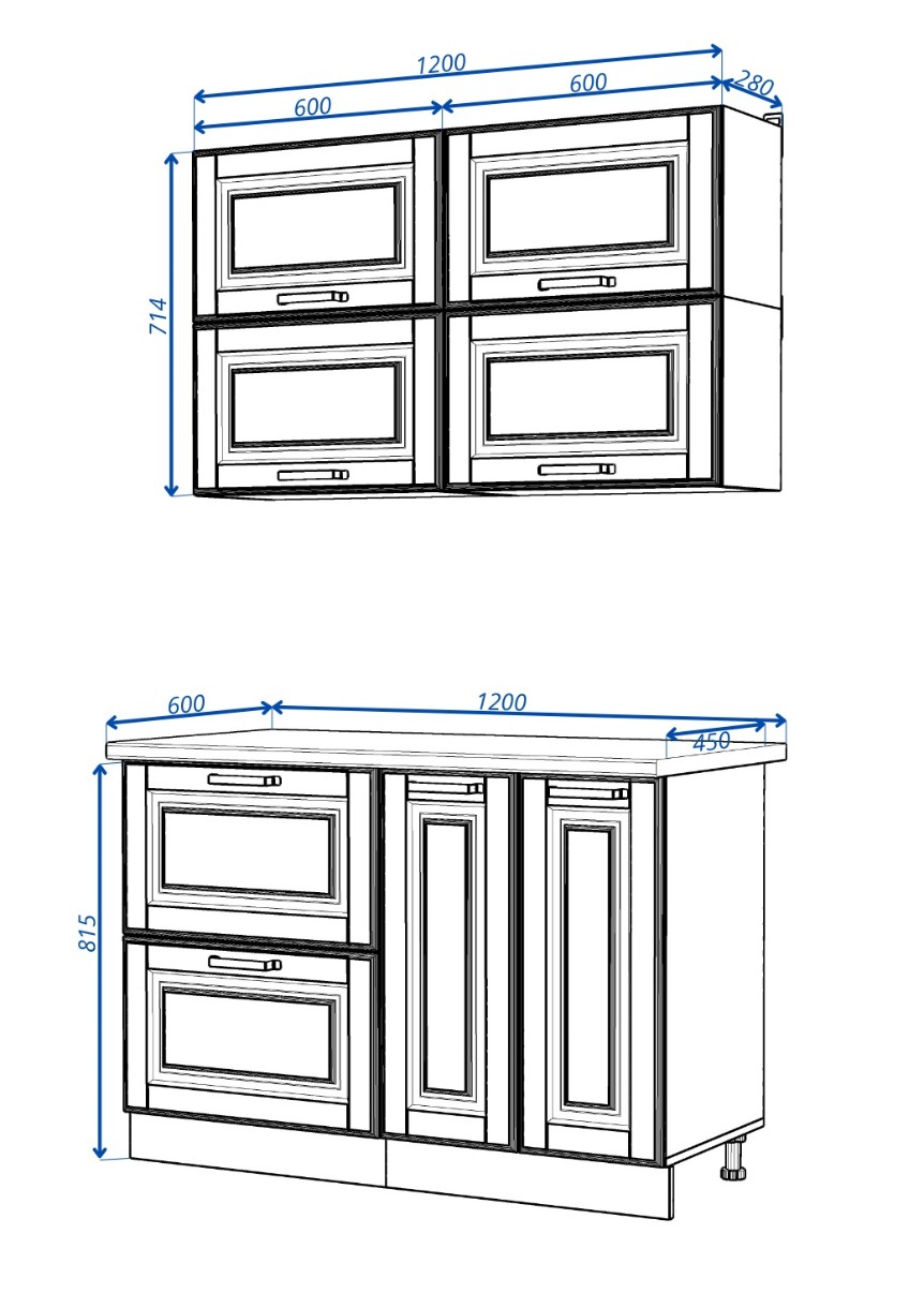 - Dulap superior B№ 12 (3 buc): 600x280 mm