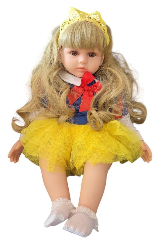 Fabricată în întregime din vinil de înaltă calitate, are gene false și păr cusut manual din mohair premium moale. Necesită îngrijire și poate fi chiar spălat.