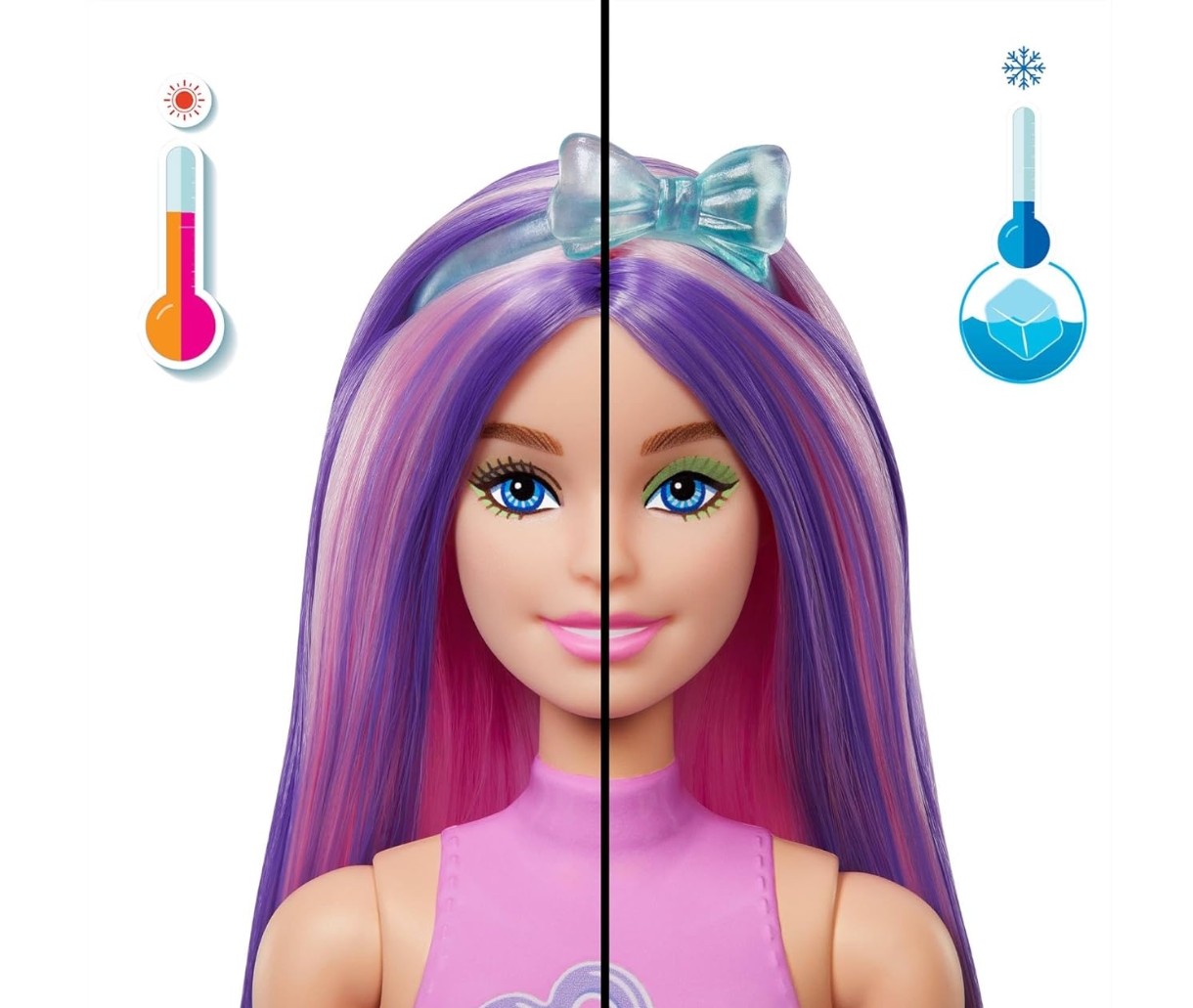 Setul Barbie Color Reveal ascunde șase surprize într-un singur pachet! Procesul începe cu copiii care îndepărtează stratul exterior al ambalajului și deschid un tub transparent pentru a dezvălui o păpușă Barbie, complet acoperită de un strat strălucitor misterios care îi ascunde aspectul. Adevărata magie se întâmplă apoi: umpleți tubul cu apă caldă și rotiți-l pentru a dizolva învelișul lavabil, dezvăluind aspectul unic al uneia dintre păpușile din serie. Această caracteristică interactivă nu este doar captivantă, ci dezvoltă și simțul rațiunii și curiozitatea copiilor.