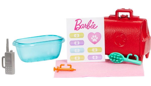 Păpușa Barbie – medic are doi pacienți adorabili pe care trebuie să-i salveze și să-i îngrijească – un pui de maimuță și un pui de tigru – precum și o mulțime de accesorii care să ajute. Cu accesorii precum un transportator de animale, o geantă medicală și multe altele, păpușa Barbie se alătură copiilor în aventuri și îi inspiră pe cei mici să viseze.