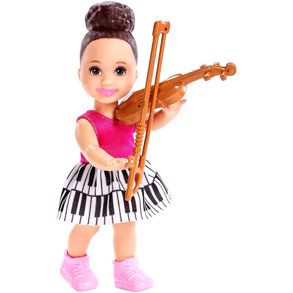 Setul include o păpușă Barbie și o mini-păpușă elevă, o partitură muzicală, două viori cu arcușe, o trompetă, un flaut și alte accesorii. Păpușa are aproximativ 29 cm înălțime, iar elevul are 10 cm înălțime.