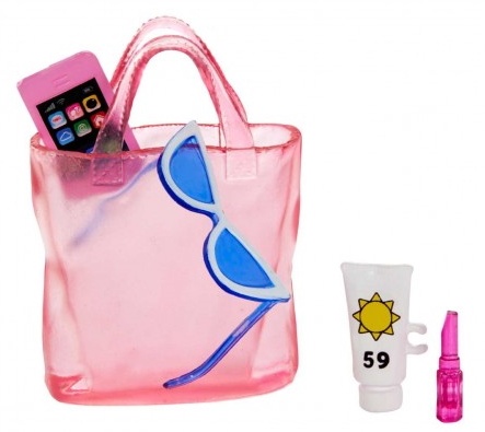 Geanta ei roz toată este perfectă pentru a-și ține loțiunea de protecție solară, rujul și smartphone-ul; conul de înghețată mentă se prinde de mâna ei pentru o poziționare realistă!