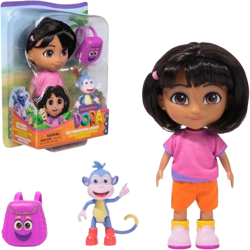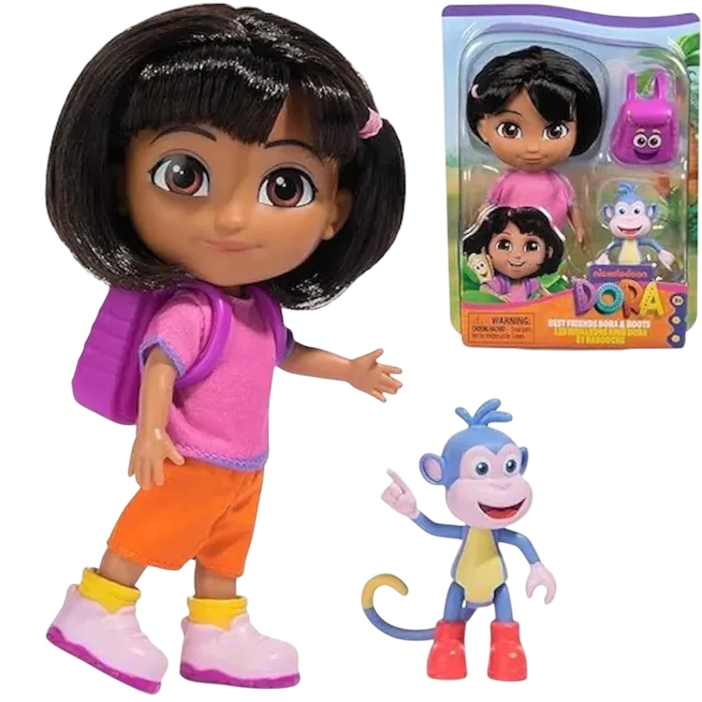 Setul de păpuși „Cele mai bune prietene Dora și Boots” le permite copiilor de vârstă preșcolară să recreeze aventuri magice, inspirate din popularul serial „Dora exploratoarea”. Păpușa Dora, înaltă de 15 cm, cu păr moale, mâini și picioare mobile și rucsacul ei violet caracteristic, este gata pentru aventuri captivante.