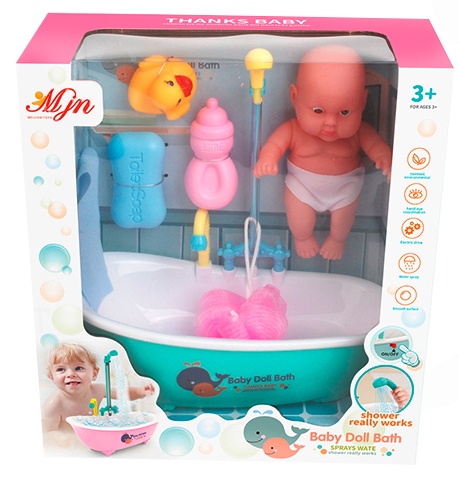 Complectatiebaie, prosop, jucărie de rață, manechin de săpun, sticlă, bureta