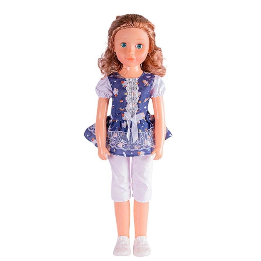 Păpușa în rochie violetă, înaltă de 69 cm, este o jucărie mare și atractivă, care va deveni prietena preferată a copilului. Are părul frumos, chip expresiv cu ochi luminoși și zâmbet drăguț. Rochia violet stilată face ca păpușa să arate elegantă și atrăgătoare, iar brațele și picioarele mobile permit crearea diferitelor jocuri și povești. Ideală pentru jocuri de rol, dezvoltarea imaginației și inventarea de povești fantastice.