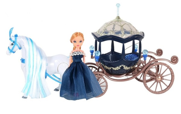 Setul include o păpușă prințesă frumoasă în rochie strălucitoare, un cal cu perie pentru îngrijirea coamei și o căruță elegantă pentru aventuri magice. Accesoriile suplimentare, cum ar fi diadema pentru prințesă și decorațiunile căruței, fac jocul și mai distractiv.